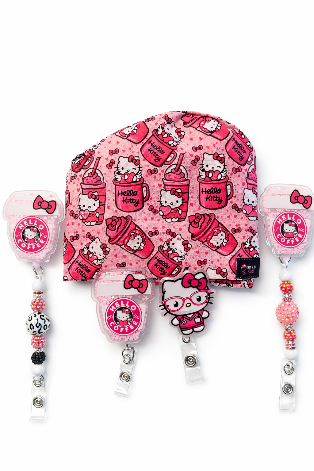 Add a cute coffee-inspired touch to your workday with this Hello Coffee badge reel. Featuring a fun coffee-themed acrylic topper with pink glitter details, this badge reel is the perfect mix of style and everyday function.