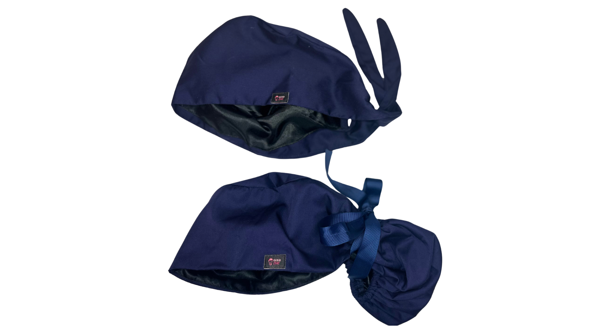 Soft, classic, and effortless — our Navy Dream satin-lined scrub cap is the perfect everyday essential. This deep navy shade keeps your look polished while the satin interior protects your hair all shift long.