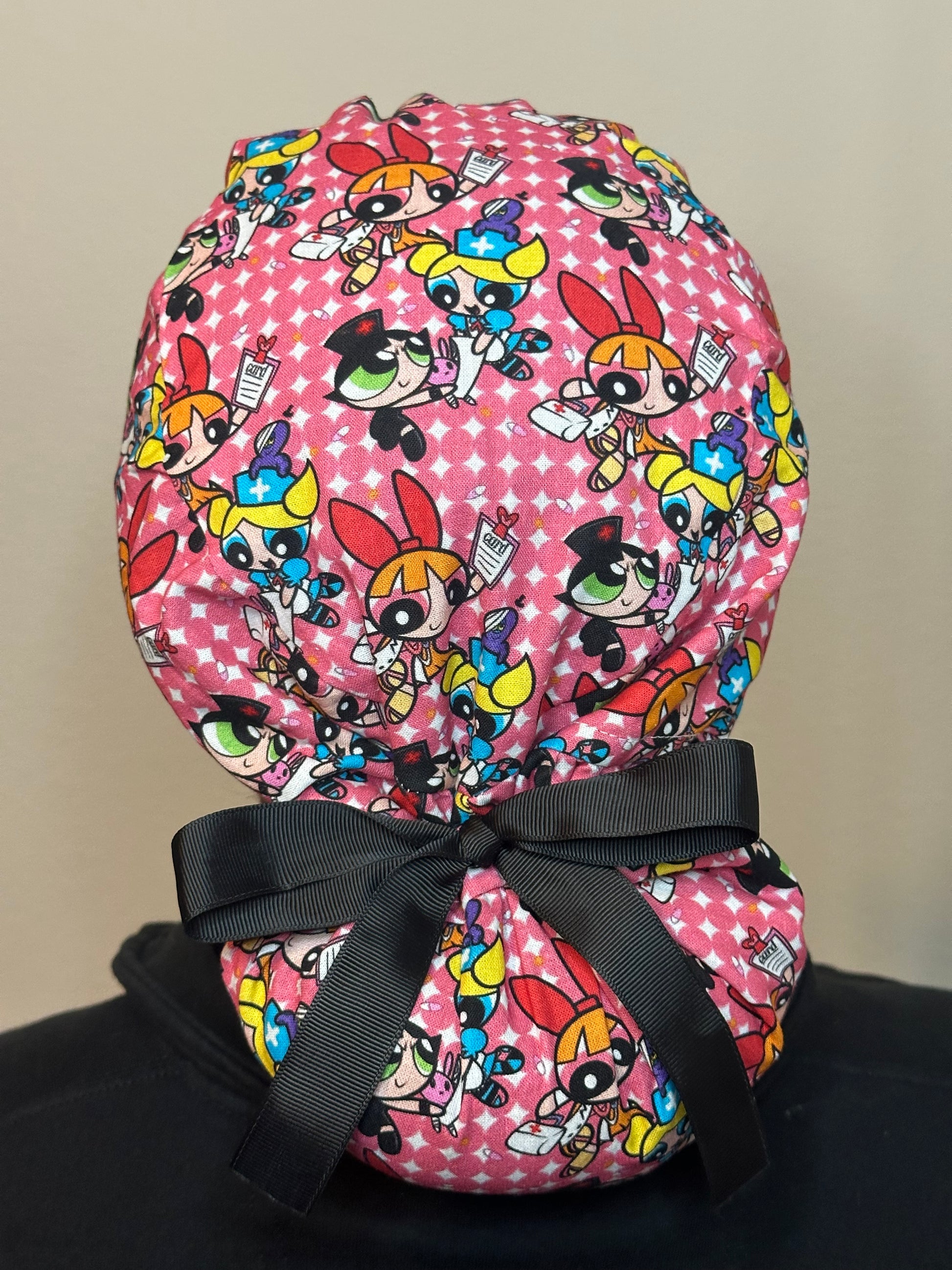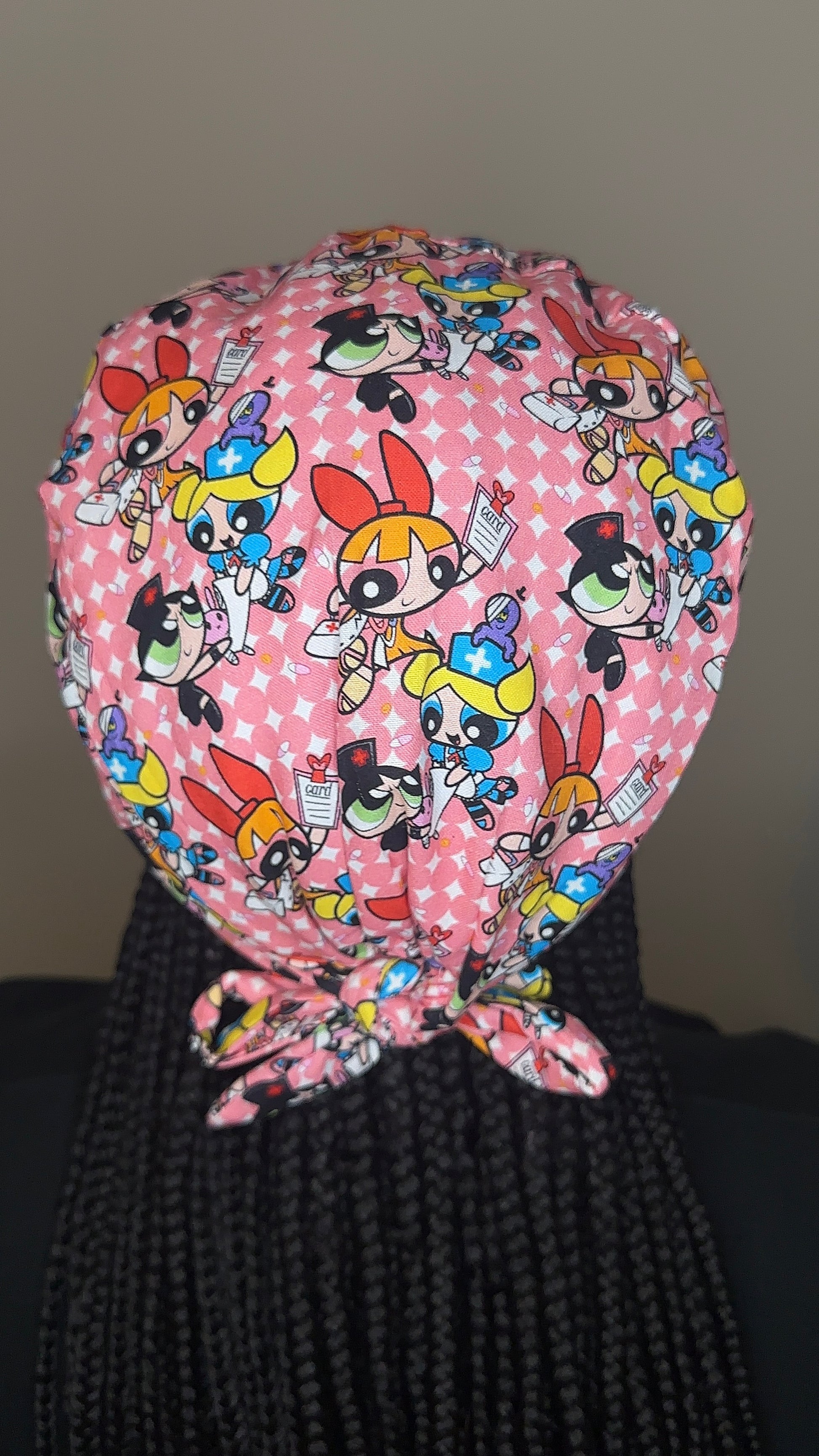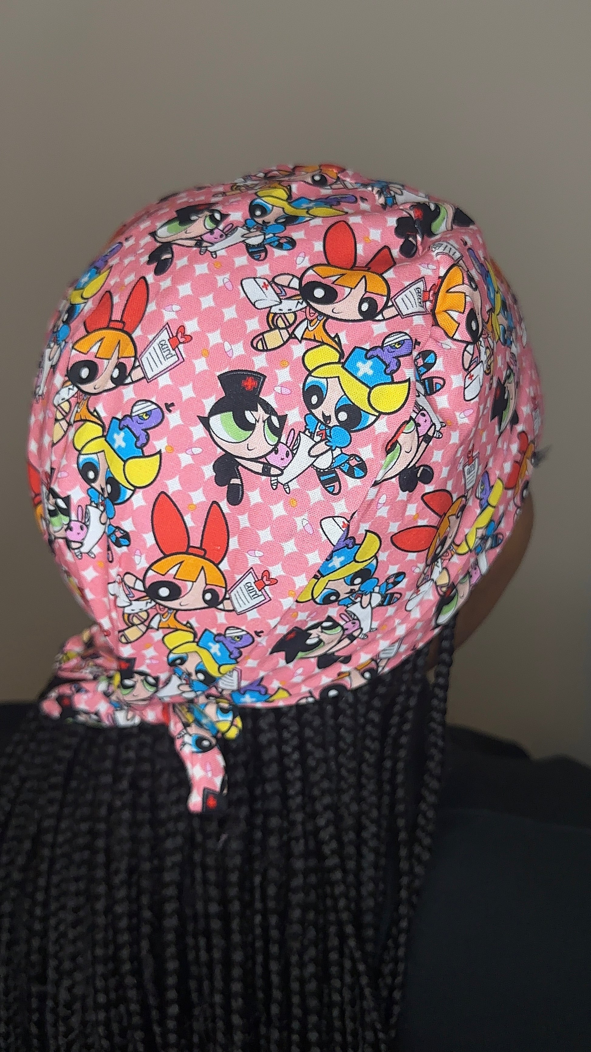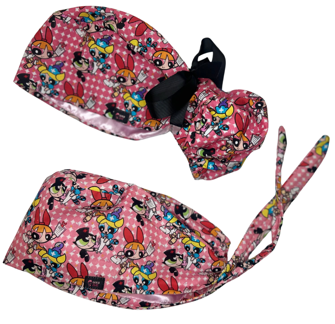Bring fun, color, and confidence to every shift with our Power Trio satin-lined scrub cap. Featuring bold pops of pink, blue, and green, this print is perfect for anyone who loves a playful, stylish look at work.